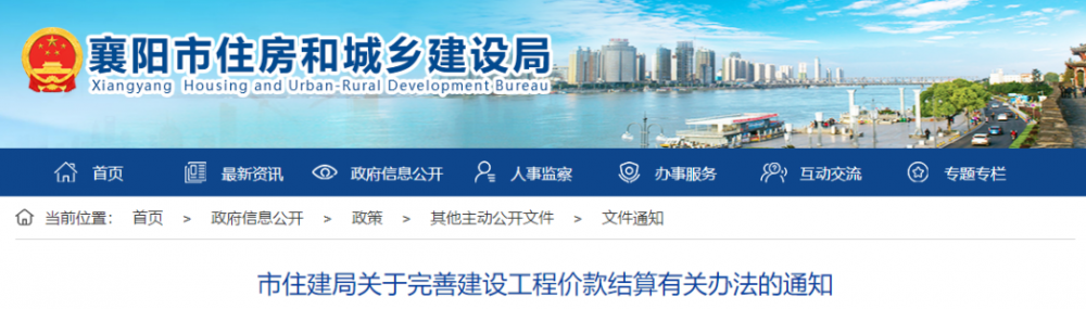 近日,襄阳市住建局发布《市住建局关于完善建设工程价款结算有关办法的通知》,自2022年8月1日起施行。