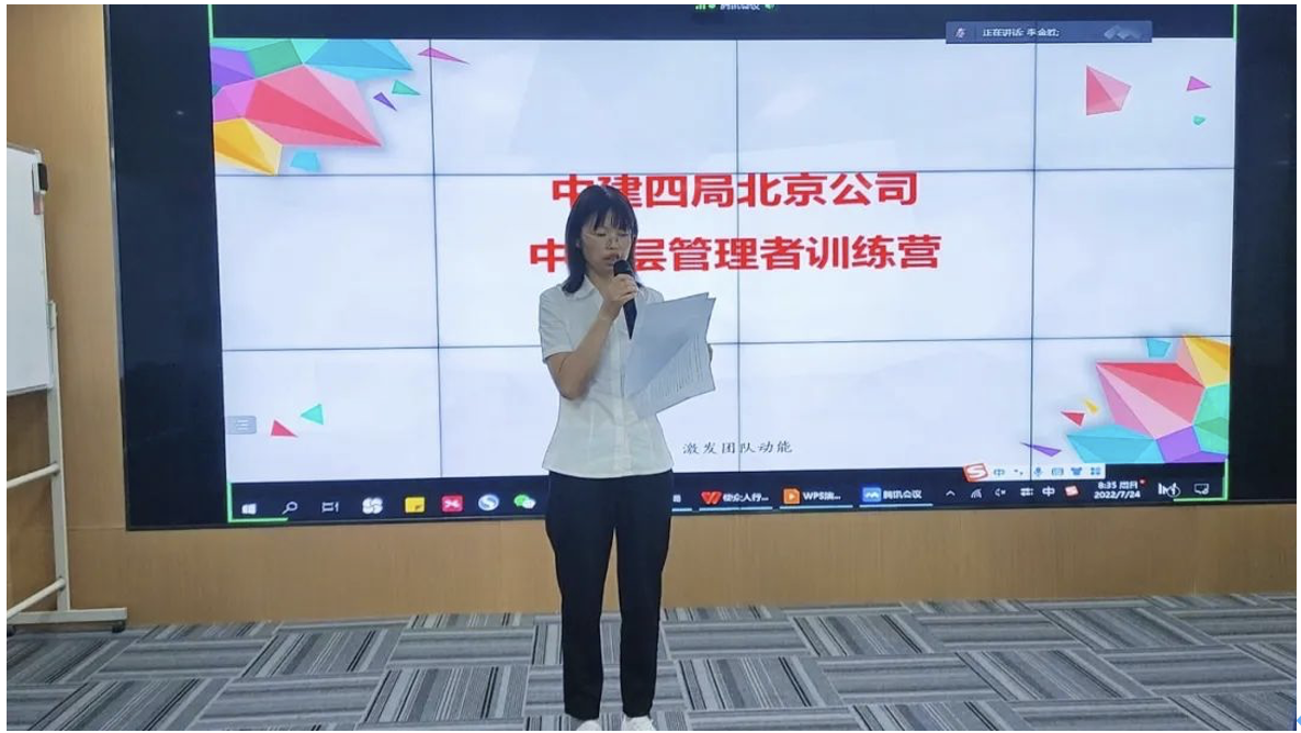 为了更好的推动并引领团队健康发展,提升团队管理能力和领导力,打造高绩效团队,中建四局北京公司--商务系统中高层管理人员领导能力提升培训《团队动能》课程于2022年7月24日圆满实施。